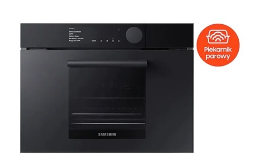 * Działa wyłącznie po aktywacji łączności Wi-Fi piekarnika. Umożliwia zdalne sterowanie piekarnikiem, jednak z powodów bezpieczeństwa nie można w ten sposób kontrolować funkcji kuchenki mikrofalowej. Dostępna na urządzeniach z systemem operacyjnym Android oraz iOS. Wymagane połączenie z Wi-Fi oraz konto Samsung. Rzeczywiste urządzenie może się różnić od przedstawionego powyżej.