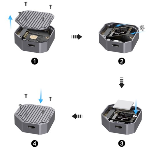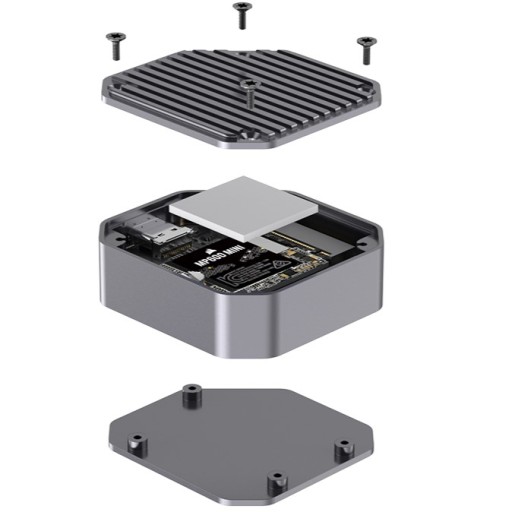 - Obudowa jest kompatybilna z dyskami NVMe PCIe w rozmiarze 2230 mm