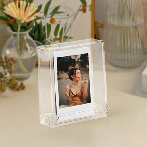 Do postawienia na biurko, szafkę, stolik. Ramka pozwala na ustawienie zdjęć natychmiastowych w rozmiarze nie większym jak 8,6 x 7,2 cm
