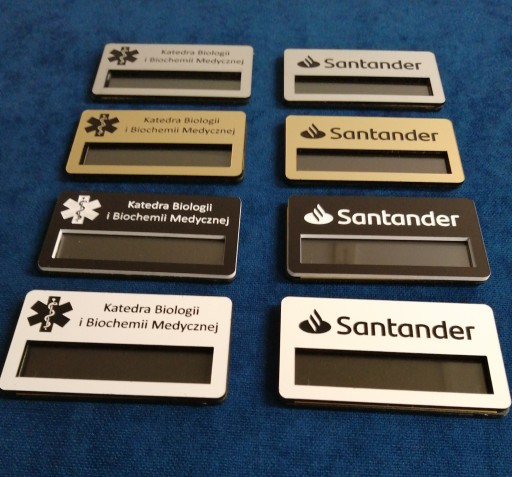Na identyfikatorze może zostać wygrawerowane logo firmy, nazwa działu