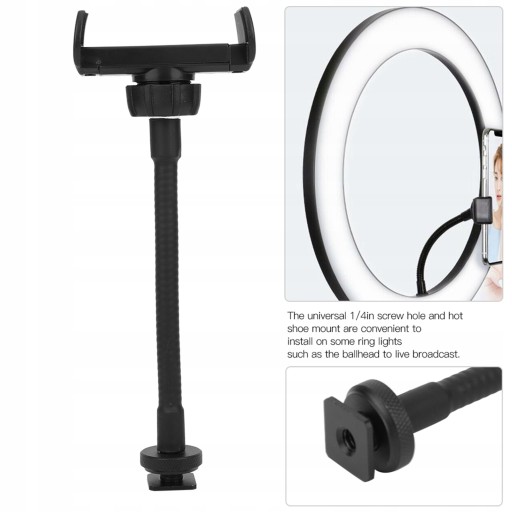✅Uniwersalny otwór na śrubę 1/4 cala i mocowanie gorącej stopki są wygodne do zainstalowania na niektórych lampach pierścieniowych, takich jak głowica kulowa do transmisji na żywo.
