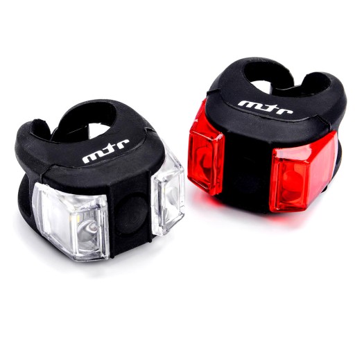 Zestaw lampek rowerowych świecących bardzo jasnym światłem, przód białym a tył czerwonym. Każda lampka wyposażona jest w 2 diody LED SuperBright posiadające 3 tryby świecenia: stały, pulsujący i intensywnie pulsujący, dzięki którym będziesz widoczny już nawet z 500 metrów!