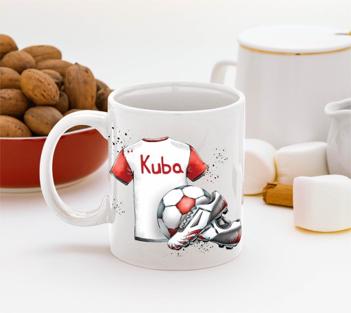 KUBEK dla PIŁKARZA PIŁKA NOŻNA czerwona koszulka + dowolne imię
