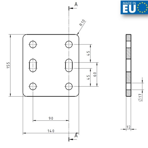 Blacha 3x90 mm wyposażona jest w cztery rzędy otworów, z czego drugi rząd to otwory owalne, co umożliwia zamocowanie w hakach wszystkich producentów - o różnym rozstawie pionowym otworów.