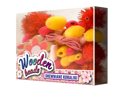 Zaprojektuj i wykonaj własnoręcznie oryginalną drewnianą biżuterię. Zestaw zawiera różnej wielkości kolorowe ozdoby: 5 dużych pomponów, 6 małych pomponów, 40 g drewnianych koralików, 2 drewniane zawieszki w kształcie kwiatów oraz sznurek woskowany długości około 1 m. Wiek +4.