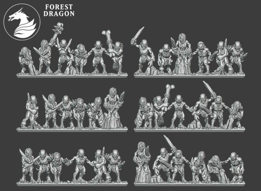 Ghouls, Vampire Army, Warmaster 10mm – 6 pasków plus 3 podstawki.