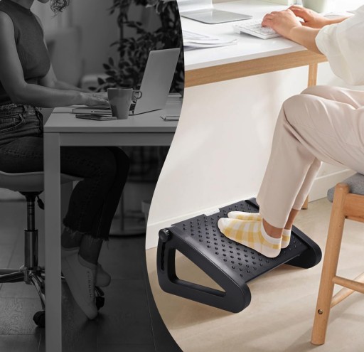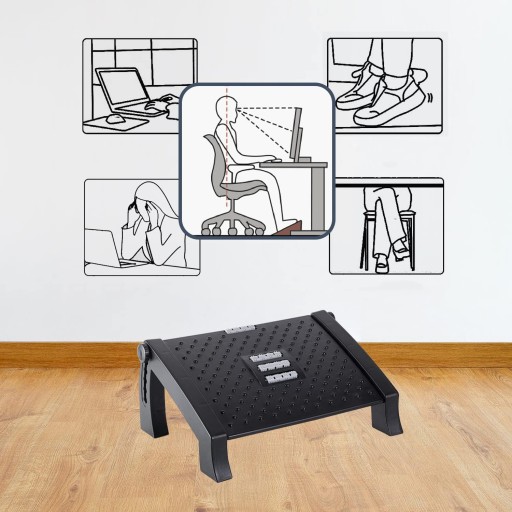 Ergonomiczny podnóżek do biurka zapewnia solidne podparcie dla stóp i pomaga zapewnić wyprostowaną pozycję siedzącą oraz utrzymać zdrową postawę dla osób pracujących przez długie godziny przy biurku. Podnoszenie nóg i poruszanie stopami na naszym podnóżku odciąża plecy, stopy, nogi, kolana i stawy.