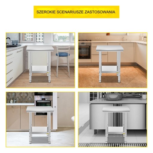 Stół wykonany z mocnej stali nierdzewnej jest odporny na pęknięcia, rdzę i odkształcenia. Łatwy w czyszczeniu, idealny do intensywnego użytkowania w kuchniach restauracyjnych.