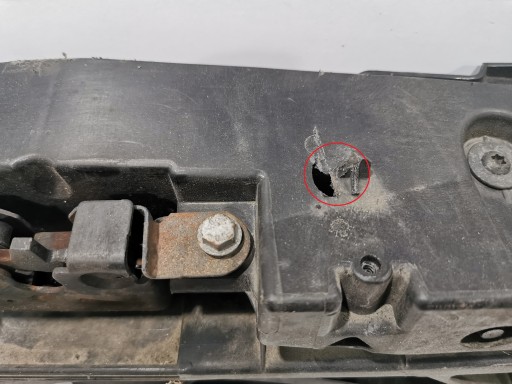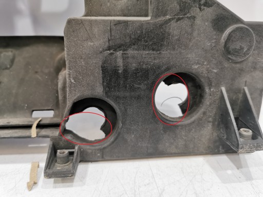 - Posiada uszkodzenia plastiku oraz brak dwóch kołeczków od spodu, zaznaczone na zdjęciach.