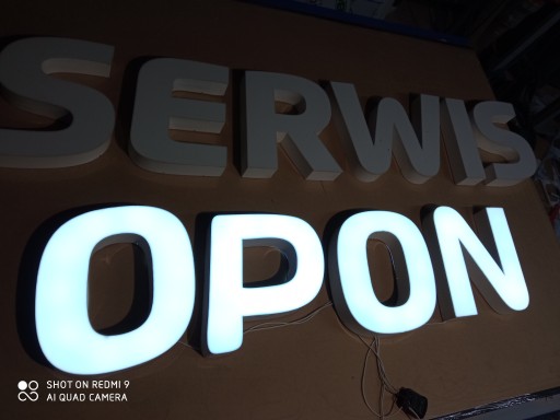 reklama przestrzenna, litery świetlne, podświetlane od tyłu, napis świecący