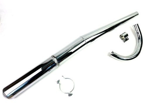 Zestaw chromowany tłumik, kolanko oraz dwie obejmy do motocykla MZ ETZ 250. Wyrób sprawdzony przez wielu odbiorców. Produkty bardzo dobrej jakości renomowanej firmy Duells.