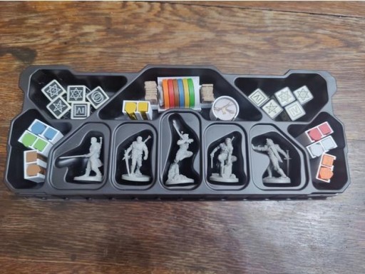 Aby zmieścić insert należy wyciągnąć oryginalną wypraskę, która znajduje się na dnie pudła. Insert wykorzystuje fabryczną wypraskę na postacie oraz potwory