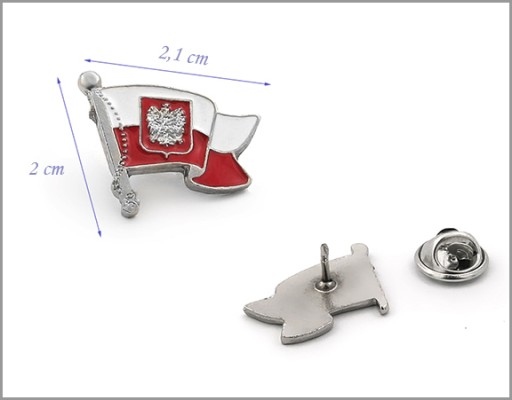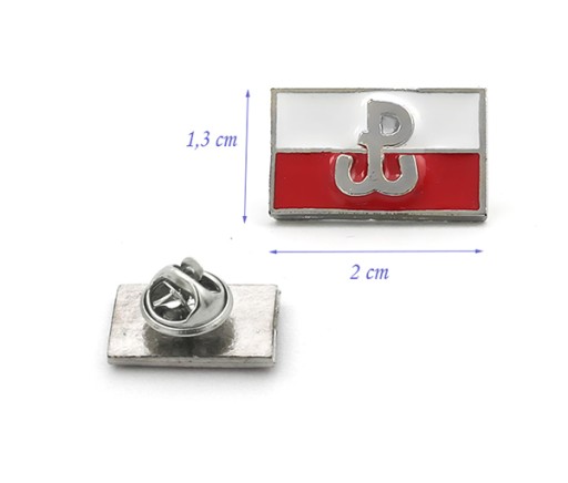 Flaga Polksi z Polską Walcząca. Wielkość znaczka wysokość 1,3 cm, szerokość 2 cm