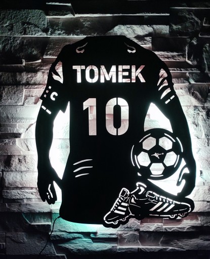 Lampka nocna Koszulka PIŁKARZ POSTAĆ Z Imieniem Piłka Nożna LED RGB pilot