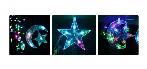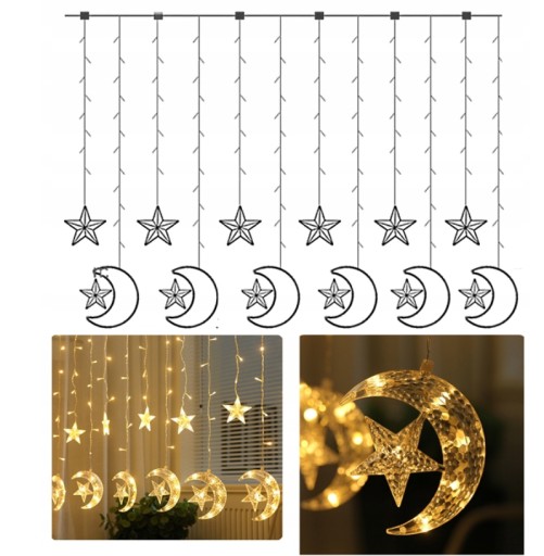 Piękna kurtyna świetlna z księżycami i gwiazdkami nada blasku każdemu wnętrzu.