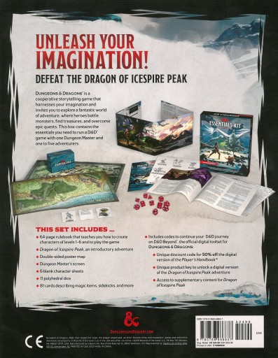 Set off on your first Dungeons & Dragons adventure with one box full of everything you need to start playing D&D with your friends. Dungeons & Dragons is a cooperative storytelling game that harnesses your imagination and invites you to explore a fantastic world of adventure, where heroes battle monsters, find treasures, and overcome epic quests. This box contains the essentials you need to run a D&D game with a Dungeon Master and one to five adventurers.