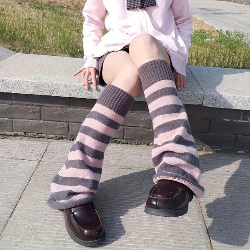 Solid Striped Knitted Leg Warmers Pończochy damskie pończosznicze