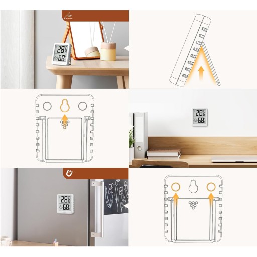 - Można postawić ten termometr pokojowy w pozycji pionowej, składając stojak