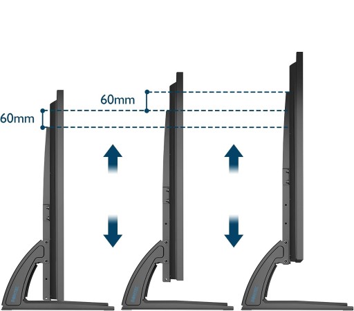 🖥️ Stojaki zostały zaprojektowane z 3 poziomami regulacji wysokości, każdy poziom można regulować w zakresie 60 mm w celu uzyskania optymalnej pozycji oglądania.