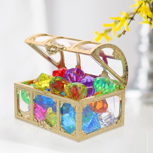 Kolorowe plastikowe klejnoty są wykonane z niezawodnego materiału, który jest bezpieczny dla dzieci do zabawy. Jest idealny na imprezę tematyczną, przyjęcie urodzinowe dla dzieci, imprezę poszukiwania skrzyni skarbów. Delikatne wykonanie, jasny kolor, dekoracyjny i użyteczny, może być używany do rzemiosła.