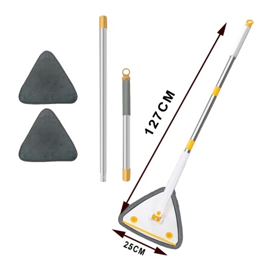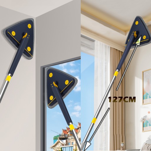 - GIĘTKOŚĆ OBROTU 360° - mop do czystej ściany ma kształt trójkątny, a głowica mopa może obracać się o 360°, co ułatwia czyszczenie miejsc bez pozostałości martwych kątów.