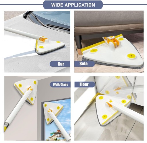 - Nadaje się do różnych ściereczek do czyszczenia ze starych ubrań i ręczników, jest to wielofunkcyjny trójkątny mop obrotowy, a także wysokiej jakości wydrążonym prętem przedłużającym ze stali nierdzewnej i wzmocnionym połączeniem, solidnym i trwałym, który może być używany przez długi czas.