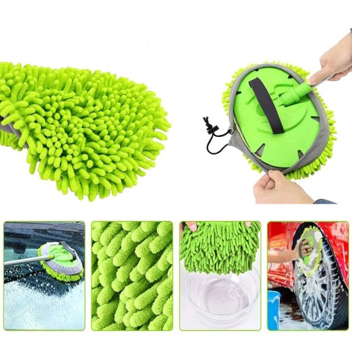🌟-Na główce czyszczącej mopa znajduje się pasek. Można łatwo zdemontować rączkę i używać głowicy jako rękawicy czyszczącej do czyszczenia wnętrza samochodu.