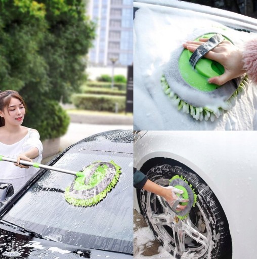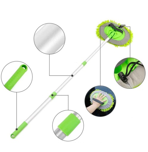 🌟 - Długość teleskopowa mopa z możliwością regulacji w zakresie 180 stopni wynosi 54-113 cm/21-44 cm, co pozwala łatwo i dokładnie wyczyścić samochód, w tym dach, maskę i przednią szybę.