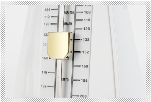 Łatwy w użyciu: najpierw nawiń strunę, następnie wybierz żądany rytm (2/3/4/6/0) i tempo (40-208 bpm), a na koniec zdejmij nasadkę i pozwól wahadłu się poruszać. Poruszasz ciężarem w górę i w dół na drążku stabilizacyjnym, aby dostosować prędkość do deski rozdzielczej.