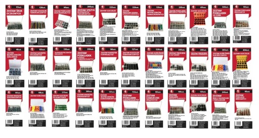 - wybór wśród 50 różnorodnych zestawów od przetyczek do kalamitek czy tez nakrętek i uszczelek
