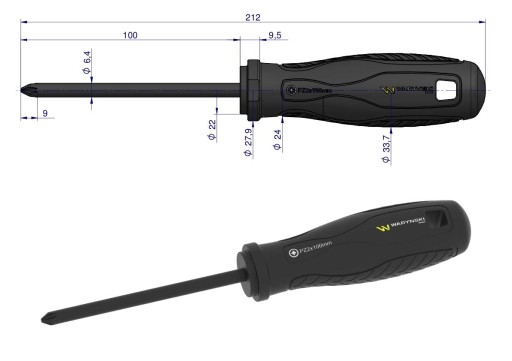 Wkrętak PZ2 x 100 mm. stal SVCM. Waryński