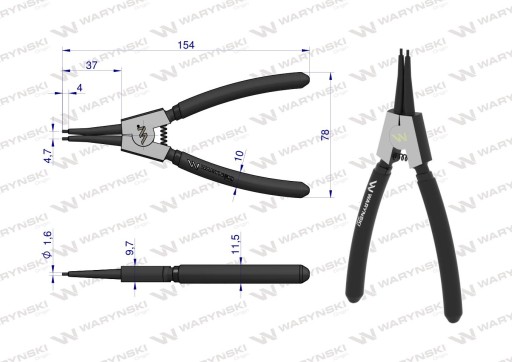 Szczypce do pierścieni osadczych 150 mm zewnętrzne proste Waryński