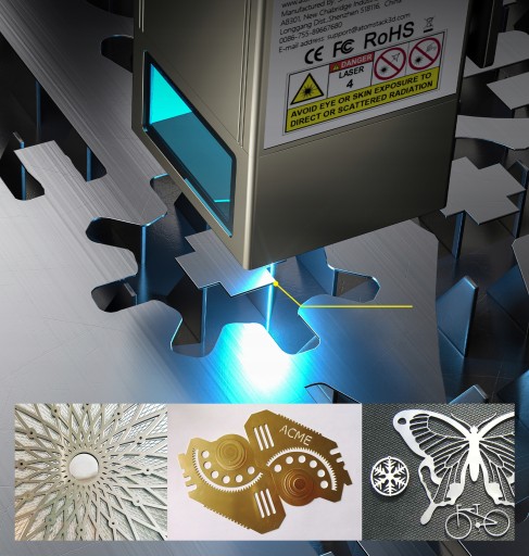 Materiał do rzeźbienia: drewno, bambus, karton, skóra, płytka PCB, tlenek glinu, nieodblaskowy metal galwanizowany i malowany, stal nierdzewna lustrzana 304, szkło, ceramika, tkanina bawełniana, łupek;