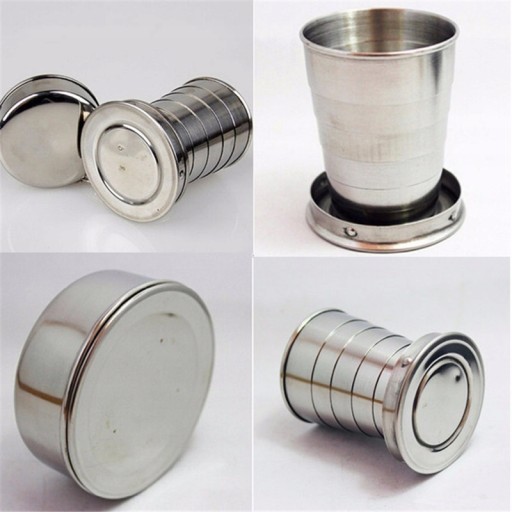 Kieliszek składany jest teleskopowo dzięki czemu zajmuje mało miejsca i idealnie nadaje się jako brelok do kluczy.