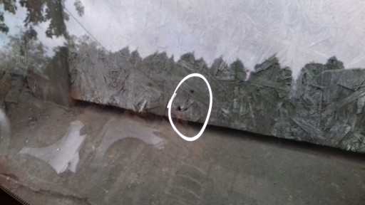 DWA ODPRYSKI NA SZYBIE WIDOCZNE NA ZDJĘCIACH