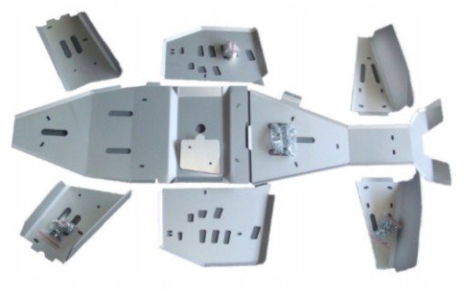 - osłony podstopni- osłony przednich wahaczy- osłony tylnych wahaczy- zestaw obejm i śrub do montażu- instrukcja montażu z opisem