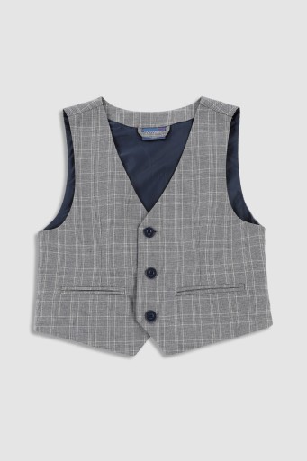 Oferowana przez nas kamizelka z kolekcji ELEGANT JUNIOR BOY to doskonała propozycja na elegancki look Twojego syna. Zapinana na guziki ze wzorem w modną kratę, doskonale sprawdzi się w zestawieniu z gładką koszulą.