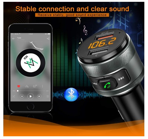 Nadajnik samochodowy Bluetooth ma podwójne porty USB i może ładować jednocześnie dwa urządzenia. Jedna to port USB QC 3.0 do szybkiego ładowania, 4 x szybsze niż standardowe ładowarki. Dzięki temu telefon można naładować z dużą prędkością.