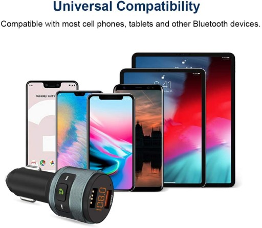 【Wielokrotna ochrona i szeroka kompatybilność】W zestawie wbudowany inteligentny układ scalony, ochrona nadprądowa, ochrona przed przepięciem, inteligentna kontrola temperatury i zabezpieczenie przed zwarciem. ►Ten samochodowy nadajnik FM Bluetooth może być sparowany z dowolnym urządzeniem Bluetooth dla iPhone, iPada, iPoda, tabletu, Samsunga, HTC, Sony i innych smartfonów Andriod jako zestaw głośnomówiący
