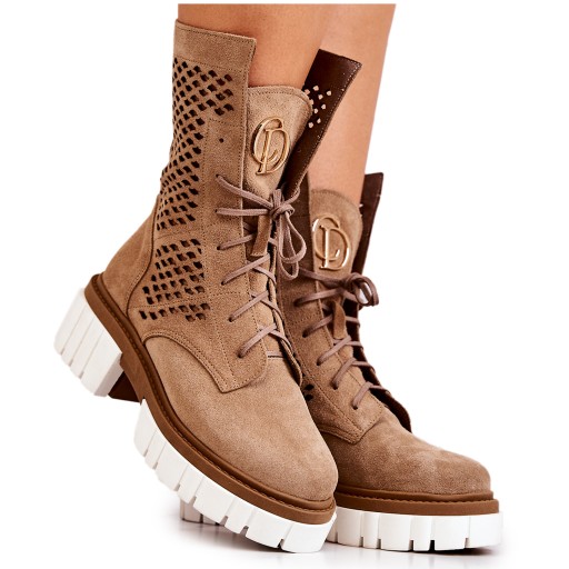 Skórzane Wysokie Botki Workery Nicole Jasnobrązowe 2706 - rozmiar 40