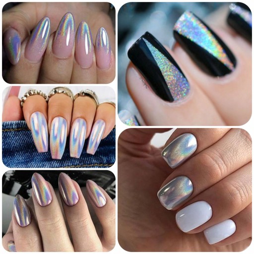 УКРАШЕНИЕ ПЫЛЬНЫХ НОГТЕЙ МУЛЬТИГОЛОГРАФИК С ХРОМОВЫМ ЭФФЕКТОМ