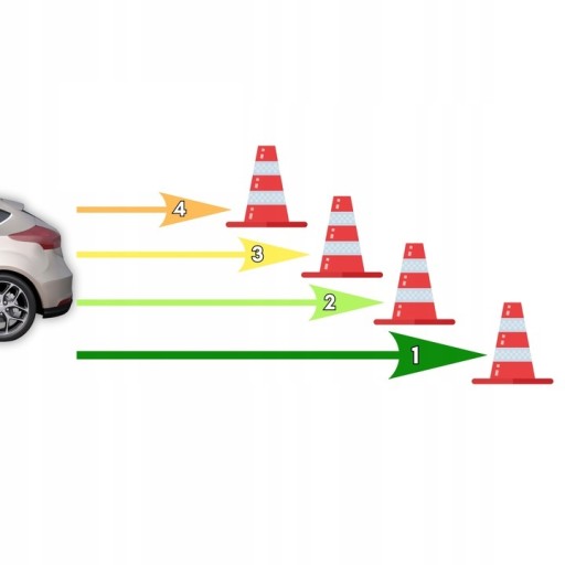 ✔️ System cofania rozpoznaje przeszkody znajdujące się na drodze pojazdu i ostrzega Cię przed nimi.