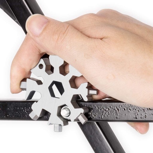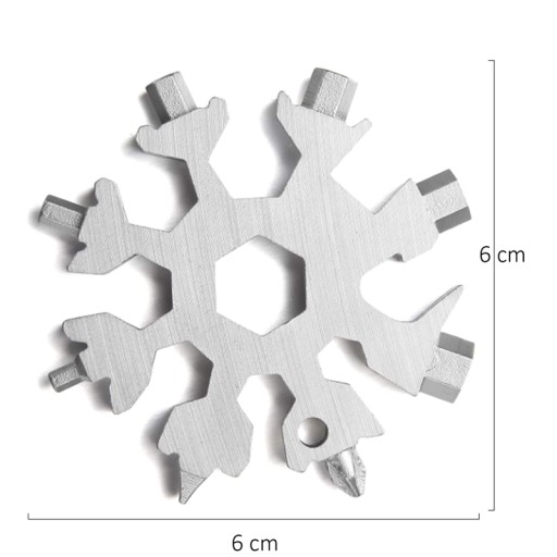 Narzędzie jest niewielkich rozmiarów 6 x 6 cm. Załączone w zestawie kółeczko spowoduje, że będzie mógł zawiesić śnieżynkę gdziekolwiek będziesz chciał. Dodatkowo klucz będzie mógł służyć jako brelok. Niewielki rozmiar sprawi, że zabierzesz go dosłownie na każdą wycieczkę rowerową, kemping, czy ognisko.