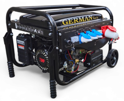 Agregaty firmy GERMAN Polska charakteryzują się niezawodnością, niezawyżonymi parametrami oraz są wyposażone w wiele systemów gwarantujących osiągnięcia jak najlepszych parametrów mocy oraz jakości prądu zachowując możliwie niskie spalanie. Jest za to odpowiedzialny stojan w którym zastosowano dodatkowy obwód wyrównujące moc oraz napięcie między fazami oraz inteligenta przepustnica działająca automatycznie, która utrzymuje stałe obroty niezależnie od obciążenia. Agregat dodatkowo wyposażony w przełącznik napięcia 230/400V.