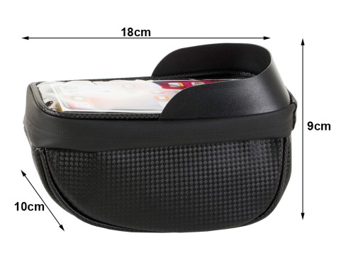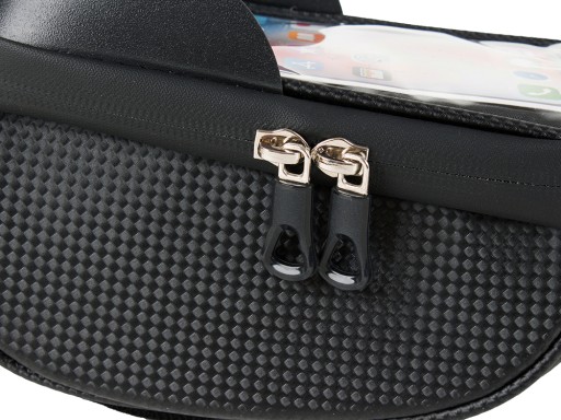 Torba jest w całości usztywniona, wykonana z wytrzymałego materiału. Wygodna w użyciu, pozwala na bezproblemowe korzystanie ze wszystkich funkcji telefonu podczas jazdy na rowerze. Montowana jest do ramy roweru na regulowane rzepy. Zmieszczą się w niej urządzenia o przekątnej max. 6,8''