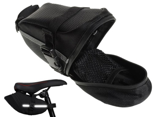 Torba jest w części usztywniona, wykonana z wytrzymałego materiału. Montowana do sztycy siodełka na rzep i do spodu siodełka na zatrzaski.