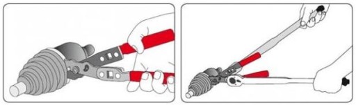 Narzędzie posiada specjalną stopkę blokującą zamek opaski zaciskowej oraz możliwość przedłużenia pokrętłami 1/2" w celu zwiększenia siły nacisku.