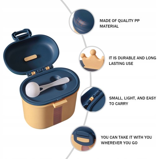 Ten produkt to pudełko na mleko w proszku, które jest wykonane z wysokiej jakości materiału PP do praktycznego zastosowania. To pudełko może dobrze przechowywać mleko w proszku dla niemowląt. Przenośny do podróży i użytku na zewnątrz. Świetny pojemnik do przechowywania mleka w proszku dla niemowląt do wyboru.