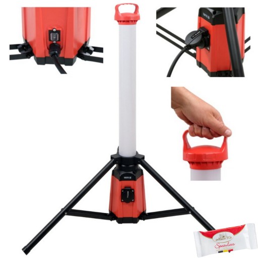 Lampa ze składanym statywem przeznaczona do stosowania wewnątrz i na zewnątrz pomieszczeń.
