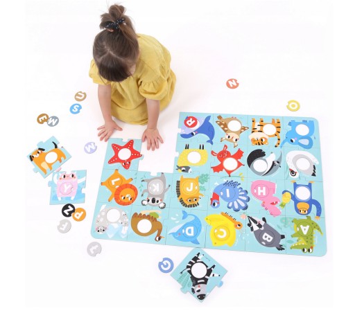 Oto edukacyjne puzzle, które zabiorą was w kreatywną i edukacyjną podróż. Poznawanie liter z wesołymi zwierzakami będzie wspaniałą zabawą.